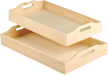 Lesena pladnja različnih velikosti (42.5 x 26.5 x 7 cm in 39 x 23 x 5 cm) sta izdelana iz neobdelanega lesa. Tako sta primerna za pirografijo, barvanje, lakiranje, servietno tehniko in druge načine dekoriranja. Dekorirana pladnja sta lahko tudi lepo, ročno izdelano darilo.