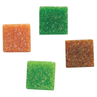 Koščki za mozaik z granitnim videzom so izdelani iz stekla. Kvadratni koščki imajo na hrbtni strani utore, ki omogočajo boljši stik z lepilom.