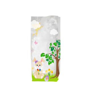 Darilna vrečka, prozorna, "Zajčki", 11.5 x 19 cm