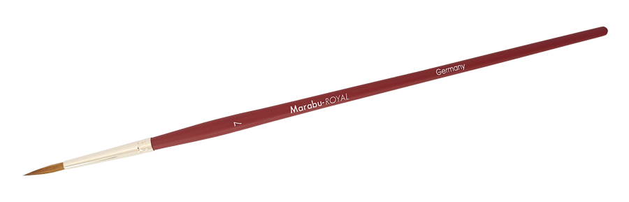 Čopič MARABU ROYAL v vrhunski kakovosti Kolinsky, iz dlake rdečega sobolja (sobolj - vrsta kune, ki živi zlasti v Sibiriji in ima zelo dragoceno krzno), je cenjen zaradi izjemno fine dlake edinstvene oblike. Te dragocene naravne dlake nudijo najboljši kapilarni učinek, so izjemno prožne in omogočajo nanos najfinejših nians in vzorcev. Medtem, ko veliko umetnikov najraje uporablja ravno te čopiče, tudi vse več hobi ustvarjalcev odkriva prednosti, ki jih ponuja ta kralj med čopiči. Primeren je za zahtevno slikanje z akvarelnimi barvami, kot tudi slikanje na porcelan, steklo ali svilo, …