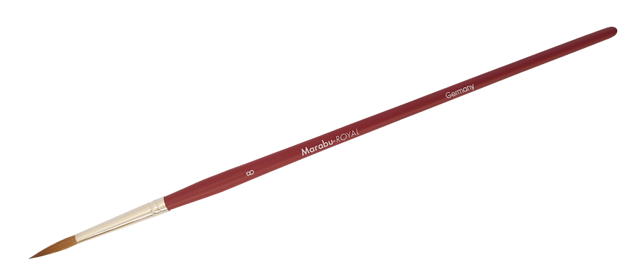 Čopič MARABU ROYAL v vrhunski kakovosti Kolinsky, iz dlake rdečega sobolja (sobolj - vrsta kune, ki živi zlasti v Sibiriji in ima zelo dragoceno krzno), je cenjen zaradi izjemno fine dlake edinstvene oblike. Te dragocene naravne dlake nudijo najboljši kapilarni učinek, so izjemno prožne in omogočajo nanos najfinejših nians in vzorcev. Medtem, ko veliko umetnikov najraje uporablja ravno te čopiče, tudi vse več hobi ustvarjalcev odkriva prednosti, ki jih ponuja ta kralj med čopiči. Primeren je za zahtevno slikanje z akvarelnimi barvami, kot tudi slikanje na porcelan, steklo ali svilo, …