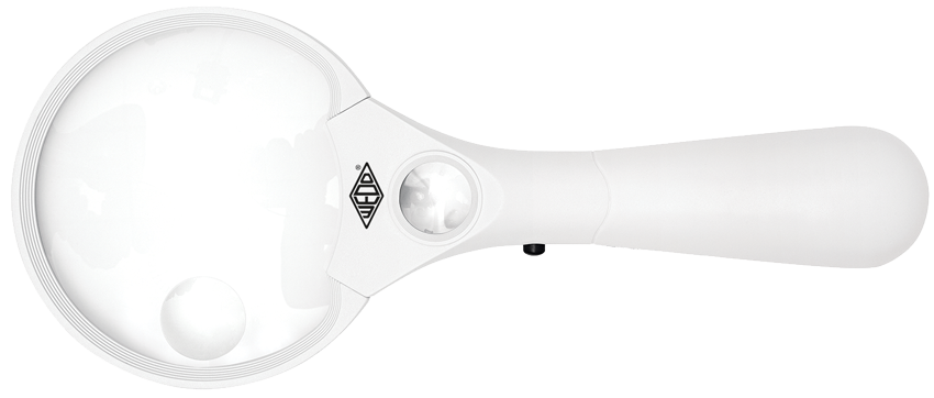 Lahko bralno povečevalno steklo (138 g skupaj z baterijami) odlikuje ergonomski ročaj, širok vidni kot in osvetlitev s tremi LED diodami. Visokokakovostna leča iz akrilnega stekla premera 9 cm ima 2.5 x povečavo. Integrirani sta še dve leči premera 2 cm s 4.5 x in 12 x povečavo za opazovanje podrobnosti. Komplet vsebuje 3 AAA baterije.