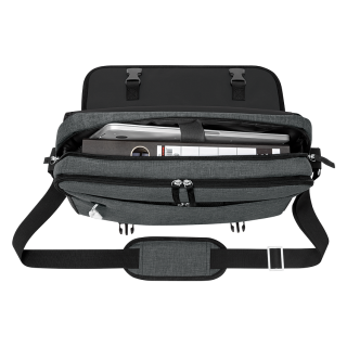Modna torba WEDO Messenger Bag COLLEGE nudi veliko prostora za shranjevanje. V osrednjem delu sta dva predala za shranjevanje številnih stvari in obložen predal za prenosni računalnik. V "pokrovu" iz blaga je všit žep z zadrgo, pod njim pa žep "organizator" za različne kartice, pisala, pametni telefon, …. V ta del je všita tudi odprtina za kabel za slušalke. Ob tem so uporabnikom na voljo še zunanja žepa z zadrgo v pokrovu in na zadnji strani ter trak za pritrjevanje na potovalni kovček. Vgrajen je tudi dolg, nastavljiv in podložen trak za nošenje na rami. Torba je izdelana iz trpežnega poliestra, ki omogoča enostavno vzdrževanje. Velikost znaša cca. 40 x 10 x 30 cm.