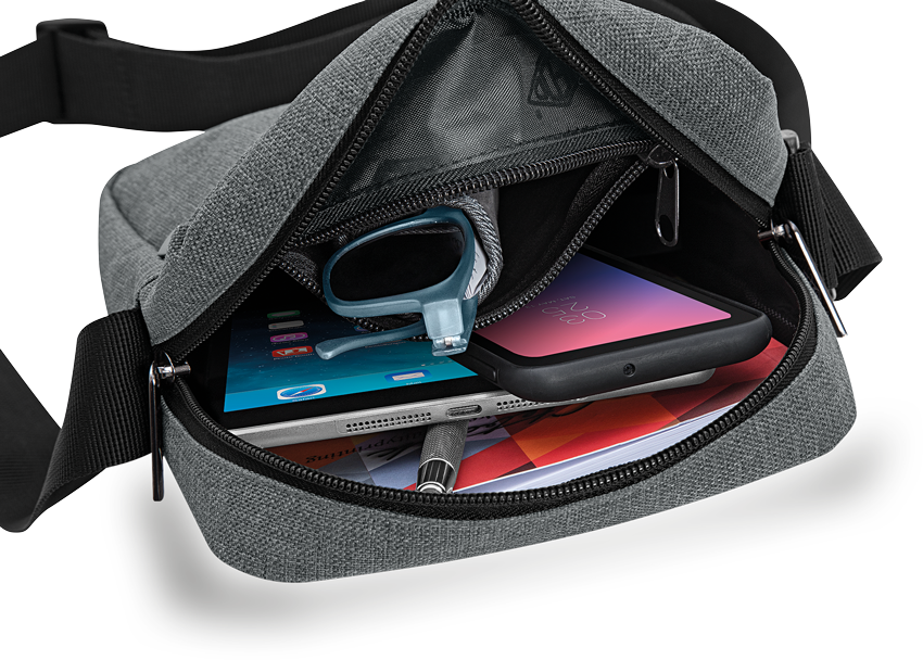 Za prenašanje najpomembnejših stvari s stilom! Uporabite malo "kurirsko" torbico WEDO Messenger Bag COLLEGE. Torbica ima dva predala z zadrgami na zunanji strani ter enega v notranjosti. Izdelana je iz poliestra z vodoodbojnim premazom in videzom platna, dolžino naramnega traku si lahko nastavite po želji. Velikost torbice znaša cca. 20,5 x 6,0 x 22,5 cm.