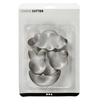 Modelčki za izrezovanje CC, 10 cm, oblak, luna, zajec, medved, 4 kosi