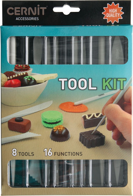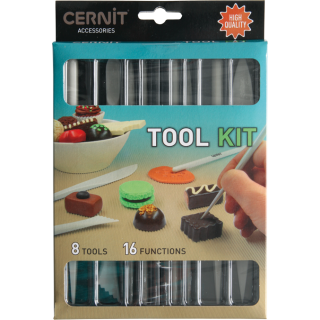 Komplet vsebuje 8 visokokakovostnih plastičnih obojestranskih modelirk CERNIT. S 16 različnimi konicami so možnosti oblikovanja modelirnih mas skoraj neomejene. Modelirke odlikuje dolga življenjska doba, ergonomična oblika in nelepljiva površina.