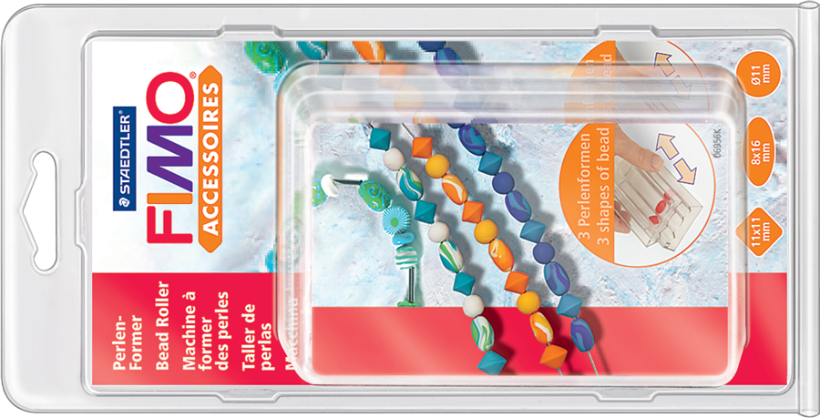 Pripomoček za oblikovanje perl FIMO Bead Roller omogoča enostavno izdelavo večjega števila perl za nanizanje povsem enake oblike. Izbirate lahko med tremi različnimi oblikami, okroglo, ovalno in diamantno. Orodju so priložena podrobna navodila za uporabo.