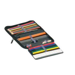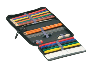 Trpežne, barvite peresnice v različnih motivih vsebujejo 17 barvic in 1 svinčnik s trikotnim prerezom, radirko, šilček, 4 črnilne vložke (bombice), ravnilo, geo-trikotnik, lepilo UHU stick 8,2 g, urnik, 2 sponki za papir, podaljšek svinčnika in silhueto nalivnega peresa. Peresnica se zapira z zadrgo.