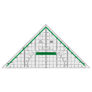 Visokokakovostna, prosojna, na praske odporna, iz akrila izdelana GEO trikotnika M+R imata dvostransko merilno skalo z barvnim ozadjem in odstranljivo držalo (držalo olajša delo in zmanjša možnost premikanja med risanjem). Robovi trikotnikov so prilagojeni tudi za risanje z "mokrimi" pisali.