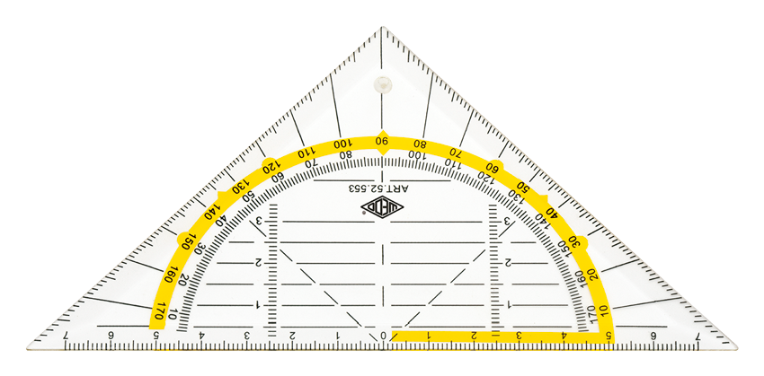 Visokokakovostna, prosojna, na praske odporna, iz akrila izdelana GEO trikotnika M+R imata dvostransko merilno skalo z barvnim ozadjem in odstranljivo držalo (držalo olajša delo in zmanjša možnost premikanja med risanjem). Robovi trikotnikov so prilagojeni tudi za risanje z "mokrimi" pisali.