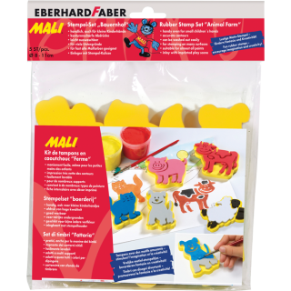 Komplet vsebuje naslednje štampiljke: pes, ovca, maček, krava in prašiček.